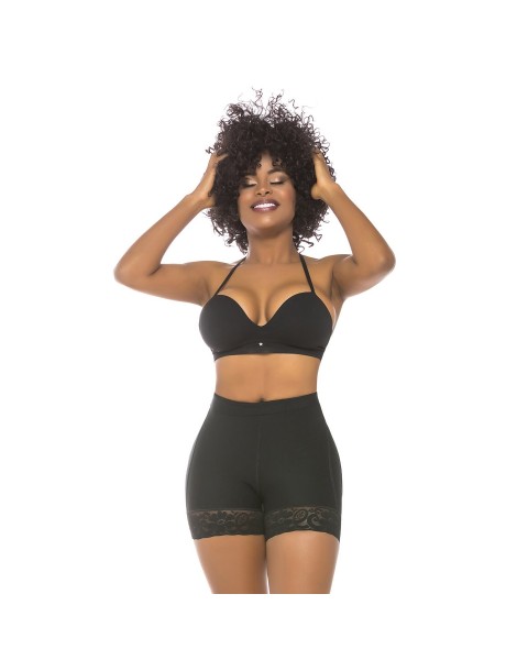 El Short Push Up con Huecos Libres - FS0319 realza tus glúteos, ideal para las caderas; posee máxima compresión que te ayudará a moldear muslos, es de uso diario, no se nota bajo la ropa. Está fabricado con dos tipos de tela, la parte exterior es elaborada en Powernet de la más alta calidad, la cual ejerce la presión adecuada para moldear tu figura. En la parte interior viene forrada en Franela Lycra Algodón, tela suave al tacto.