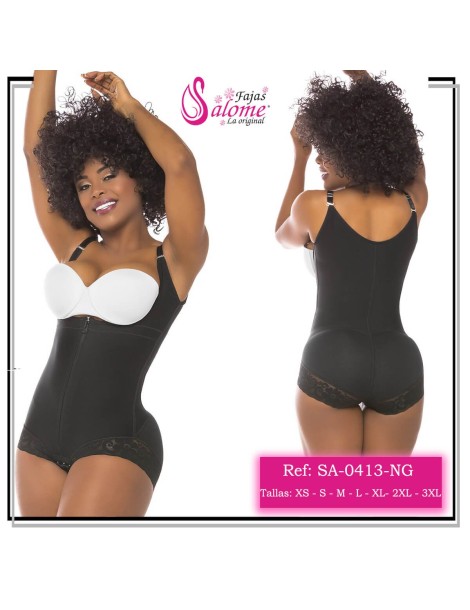 Faja Salome en estraple con tiras removibles y cachetero en encaje siliconado para brindar una buena adherencia al cuerpo, comprime en la cintura brindando un buen control y moldeamiento de la zona. Te ayudan a reducir medidas y fueron diseñadas para brindarte la mayor comodidad gracias a a su diseño interno en franela y tela hipoalergenica. Fácil uso, gracias a su cremallera frontal. Disponible en negro y beige.